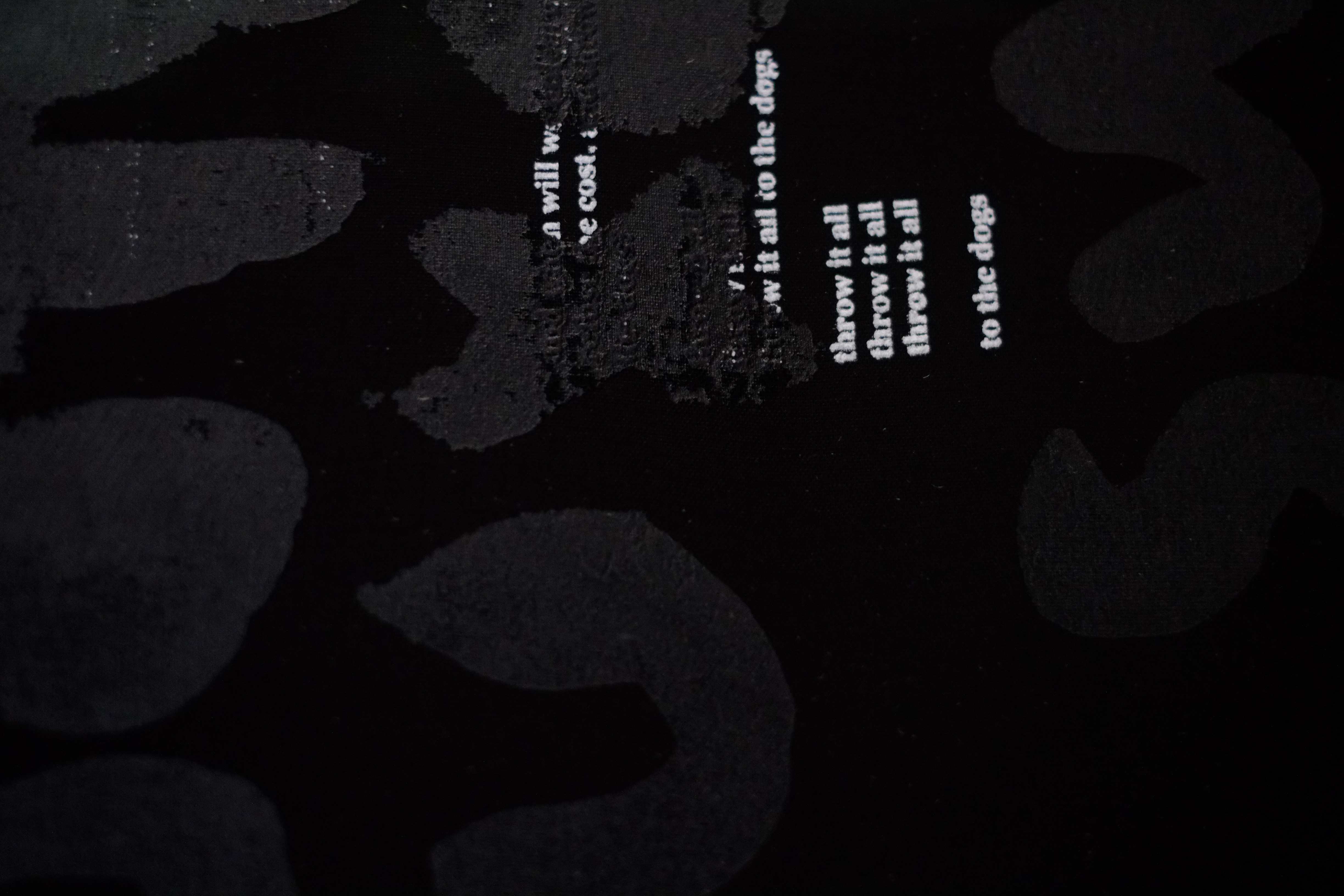 Kill saviors kill kings, 6 screen-printed fabrics, each 100 x 150 cm, hand-printed, 2022